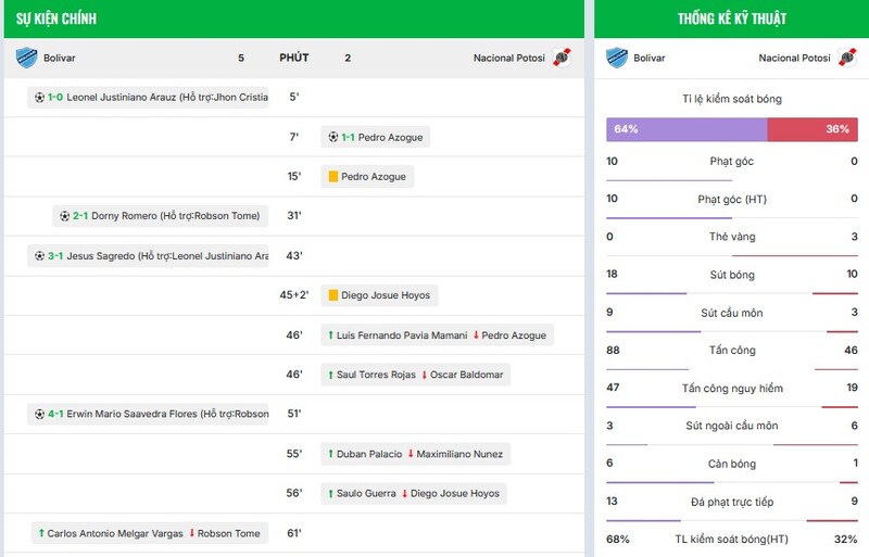- Thống kê sút bóng, kiểm soát, phạt góc, số lần phạm lỗi