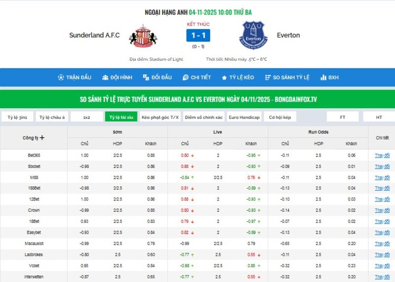 Đây là dữ liệu bổ sung rất quan trọng khi người chơi muốn phân tích bối cảnh trận đấu và hiểu rõ hơn về xu hướng thay đổi ty le keo.