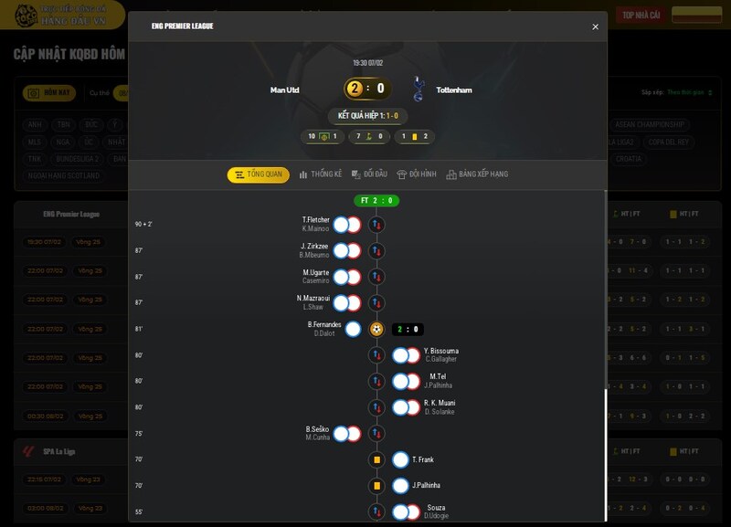 Kết thúc trận, mục kết quả cũng hiện đầy đủ. Mình không cần mở thêm trang khác để dò lại tỷ số hay người lập công. Với người lười như mình, sự tiện lợi đó đáng giá lắm.
